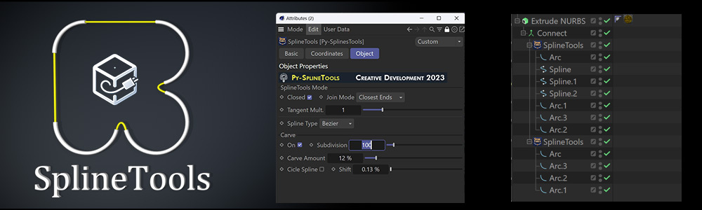 SplineTools is a python-based utility designed to parametrically manage the merging of splines. These splines can be joined consecutively or by closest ends. This tool generates a spline parametrically that will connect all the splines. It also has the capability to carve a portion of the resulting spline and shift it along the original curve.